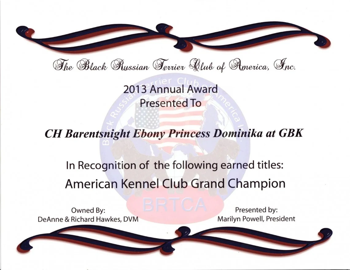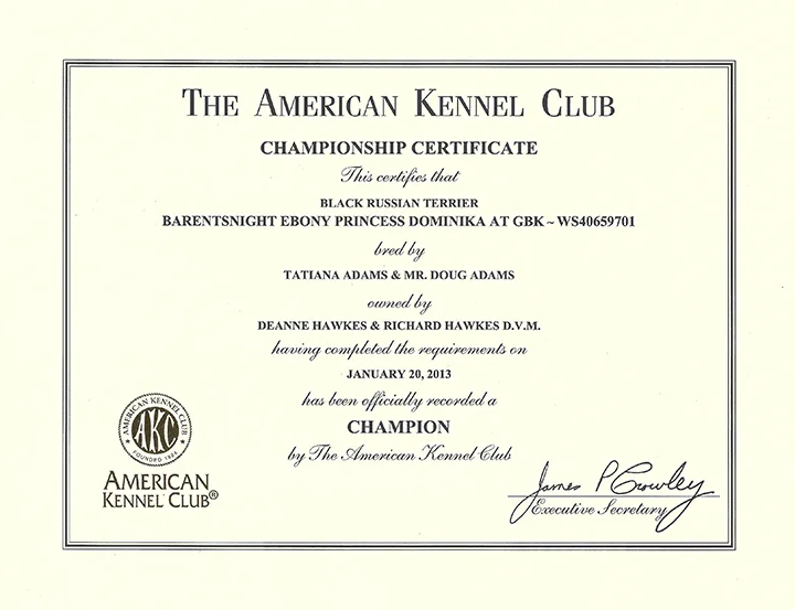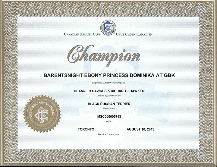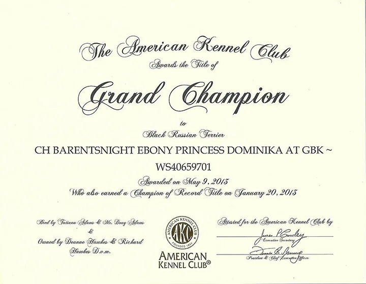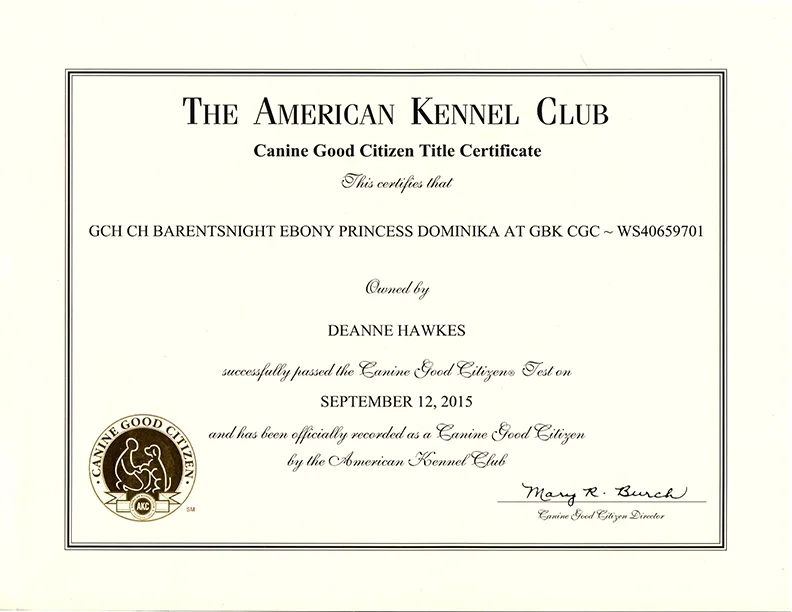 AKC GCH IABCA INT CH CKC CH BarentsNight Ebony Princess Dominika at GBK, CGC